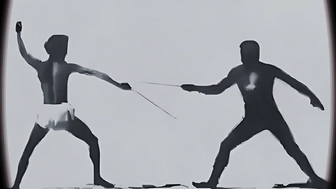 Given that fencing was first regularised in 1880 in London, Muybridge’s sequence of photographs Athletes Fencing (1881) offers direct evidence of the growing popularity of the sport in its early days. The moving images could have served as educational material for those seeking to understand the new format more effectively than through static photographs, thereby providing an additional application for Eadweard Muybridge’s work beyond scientific use. Such works had the potential to become acts of entertainment in themselves, allowing the consumption of sport to occur independently of attendance at events. From its earliest stages, we witness the multi-dimensional functions that motion pictures could serve in a modernised world.